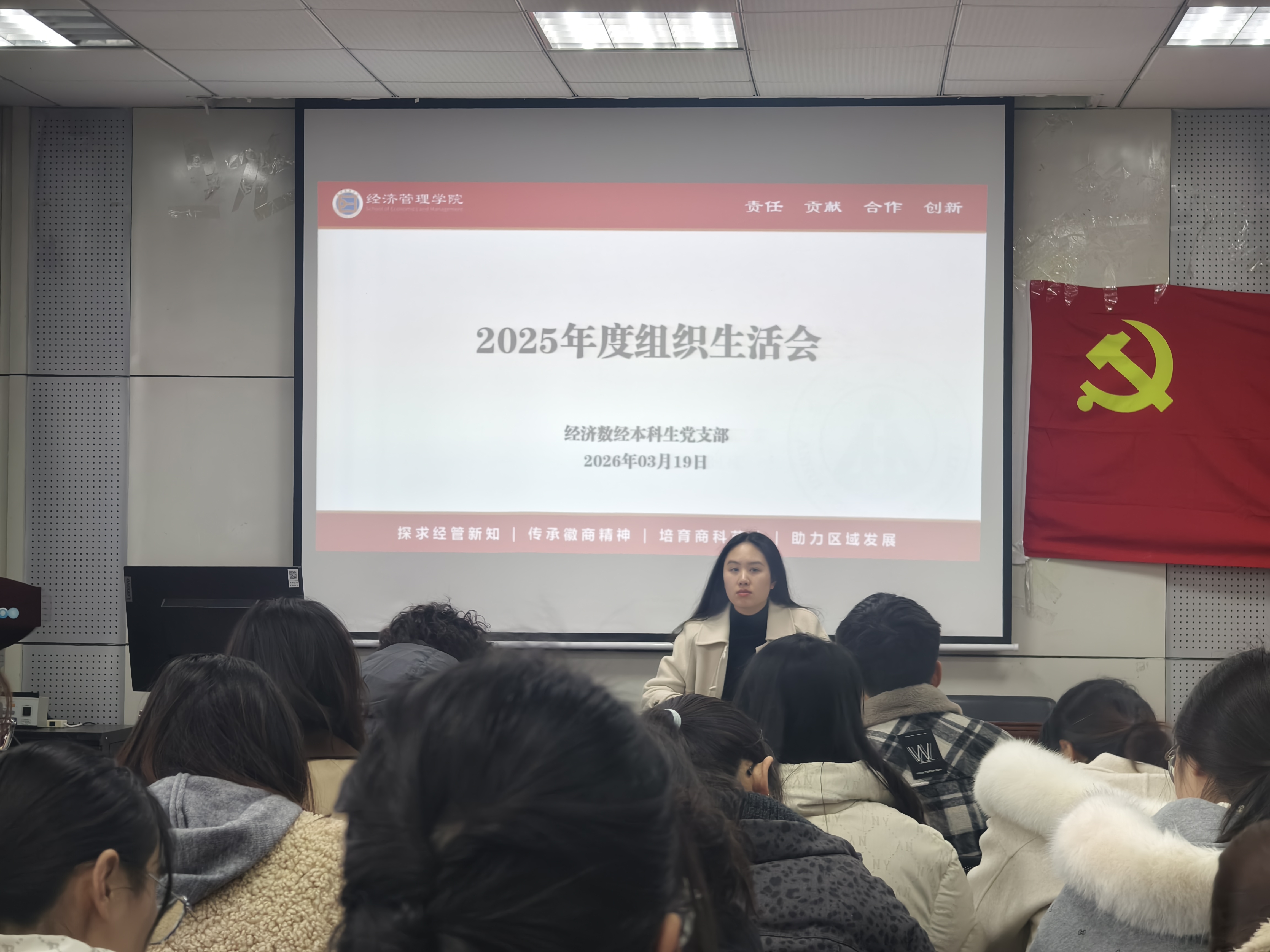 为加强党员党性锻炼,增强党的组织活力,3月19日,经济数经本科生党支部召开2025年度组织生活会。支部全体党员参加会议,会议由党支部书记付擎主持。