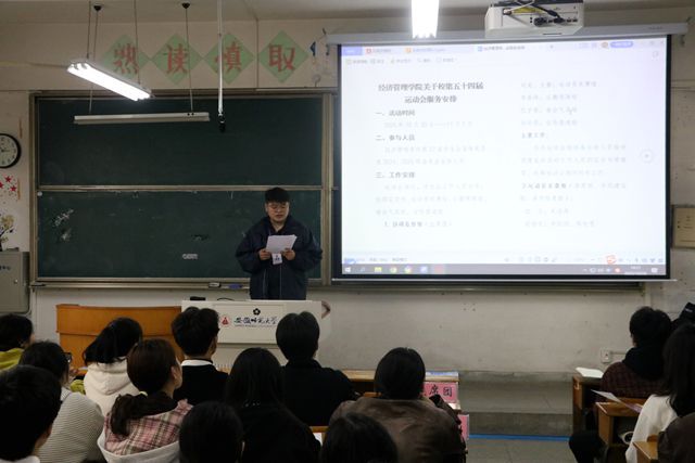 院学生会主席刘炎对校运会各部门的具体分工进行明确,同时说明相关注意事项。