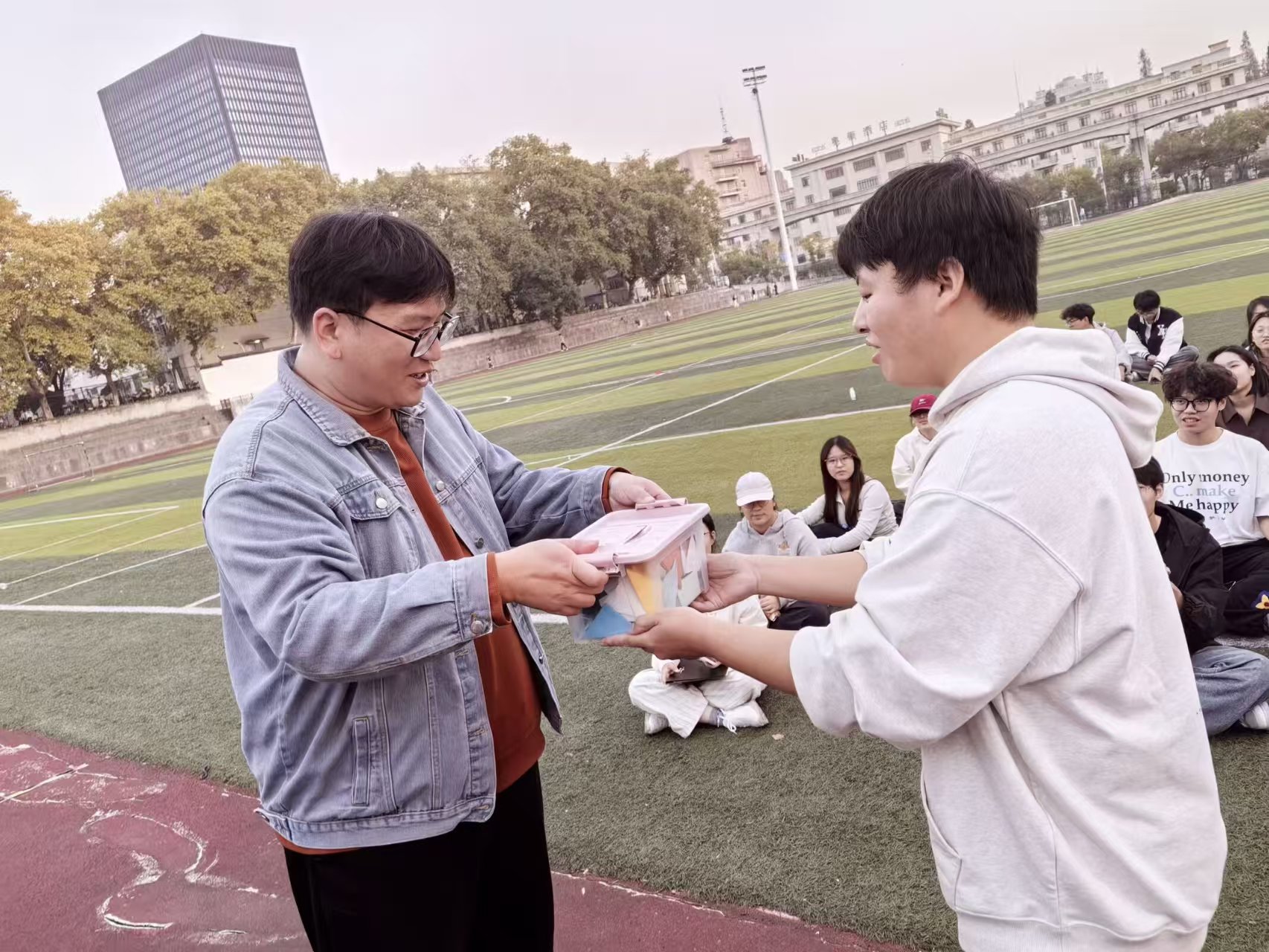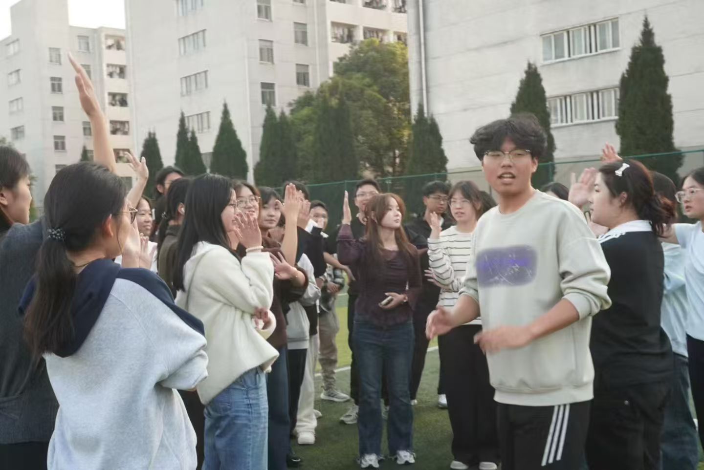 两个班级分别围绕“破冰融合-团队挑战-反思分享”三大模块展开,设置“趣味接力”“传声筒”“极速60秒”“胡辣汤小游戏”“齐心协力按手印”等梯度化项目,既贴合了“兼顾趣味性与实践性”的要求,又实现了从陌生到协作的渐进式体验。同学们纷纷表示,通过素质拓展活动增强了对集体的认同感和归属感。