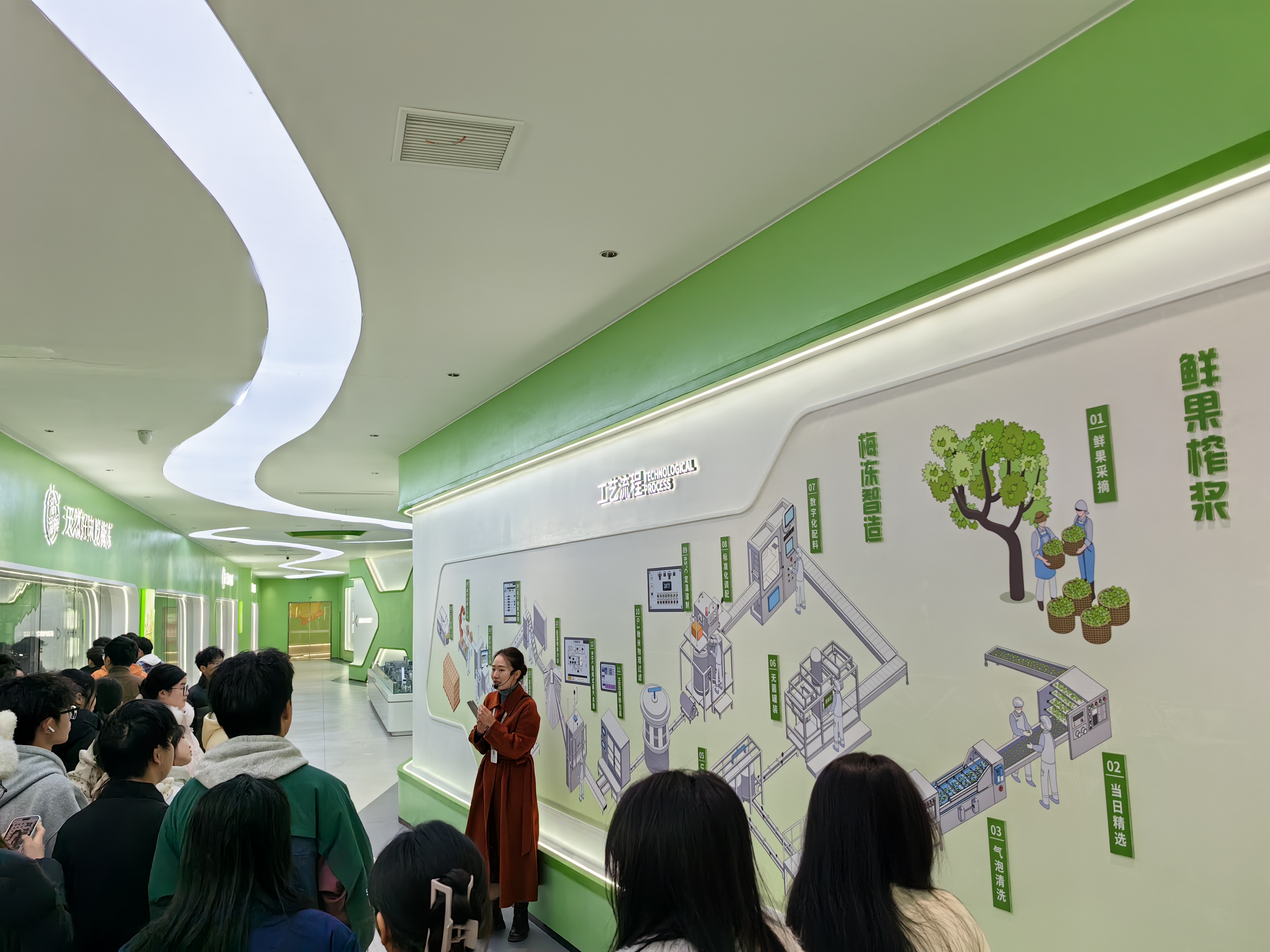 本次实践以“走进标杆企业,扎根专业成长”为主题,聚焦食品制造业供应链全流程管理。在产业园内,同学们通过企业展厅讲解、生产车间实地观摩、产品品鉴与交流互动,直观了解了青梅食品从原料种植、生产加工到物流销售的全产业链运作模式。企业负责人重点介绍了其以“垂直整合+数字赋能”为核心的供应链管理体系,阐述了如何通过标准化基地建设、精细化流程管控与信息化协同,实现产品品质提升与供应链效率优化。