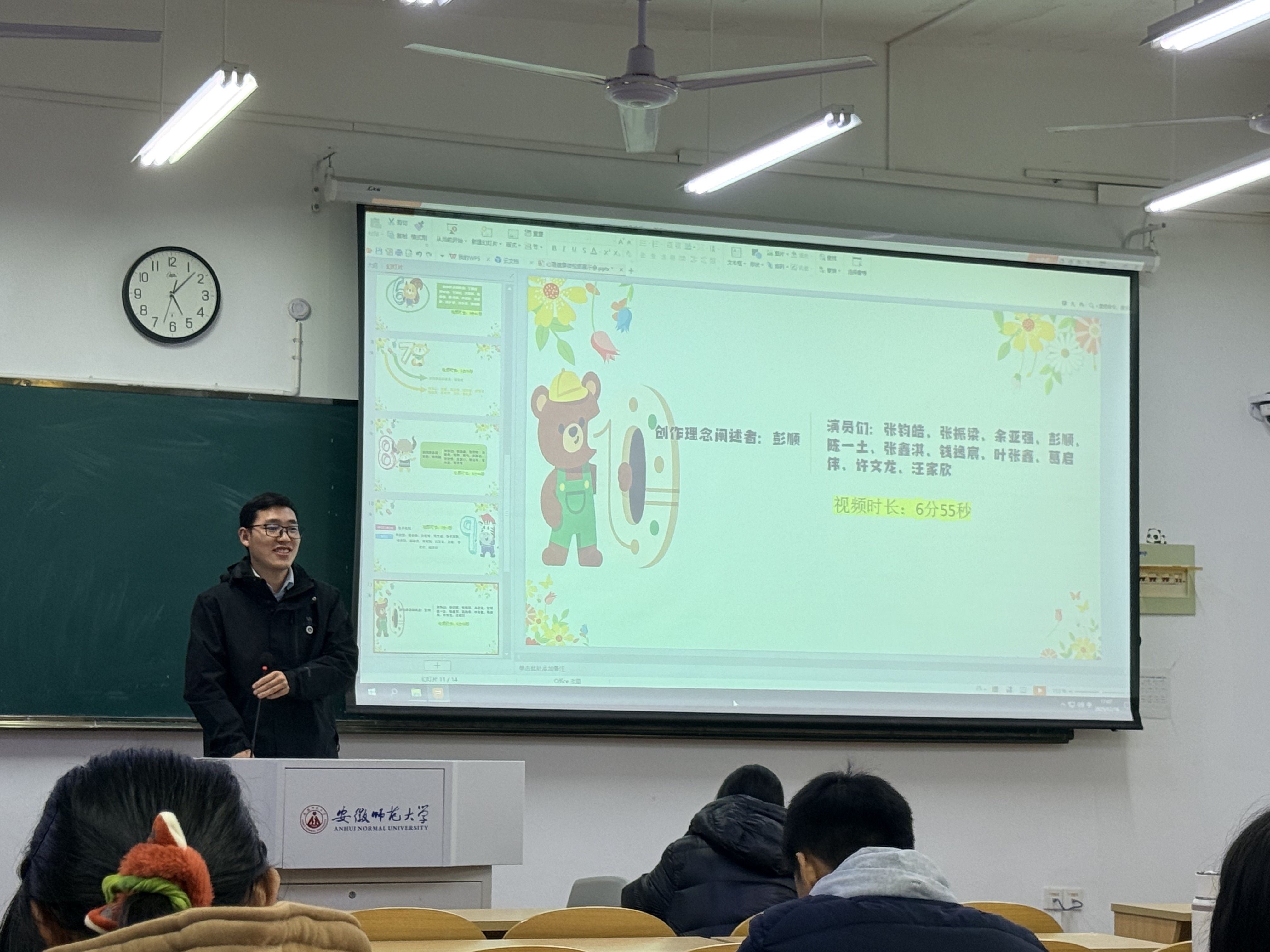 展示结束后,张晨老师对作品逐一进行点评。他结合视频内容,从主题立意、叙事逻辑、表现手法等角度给予具体反馈,既肯定了同学们在情感表达与议题捕捉上的闪光点,也针对部分作品的呈现方式提出了专业建议,引导大家在创作中深化对心理健康的理解。他在总结中寄语同学们:“心理健康教育重在觉察、接纳与成长。希望通过这次微视频创作,大家不仅能学会用艺术的方式表达内心,更能在此过程中看见自己、倾听他人,培养积极阳光的心态。学院将持续关注大家的心理状态,陪伴每一位同学健康、充实地度过大学时光。”