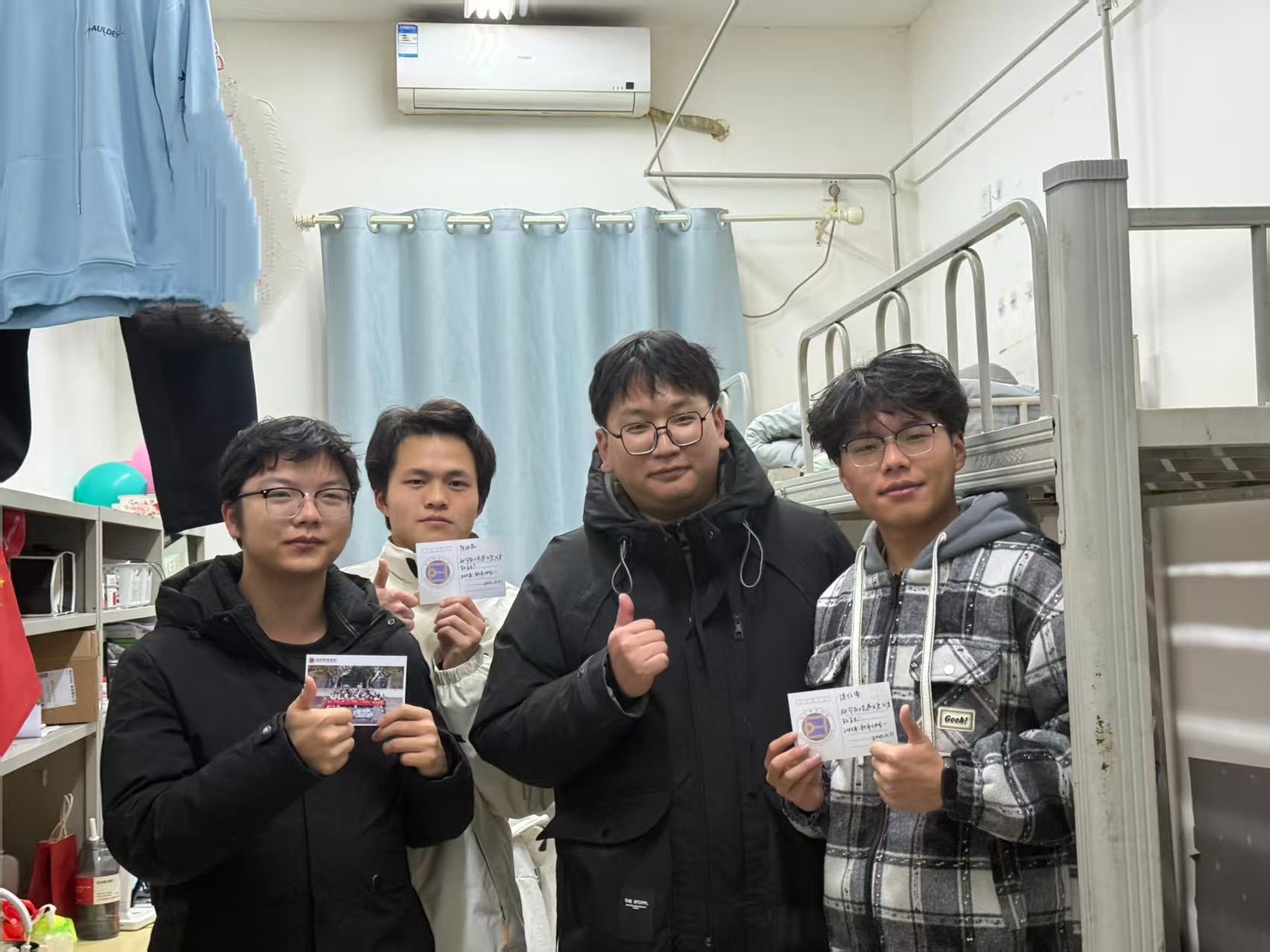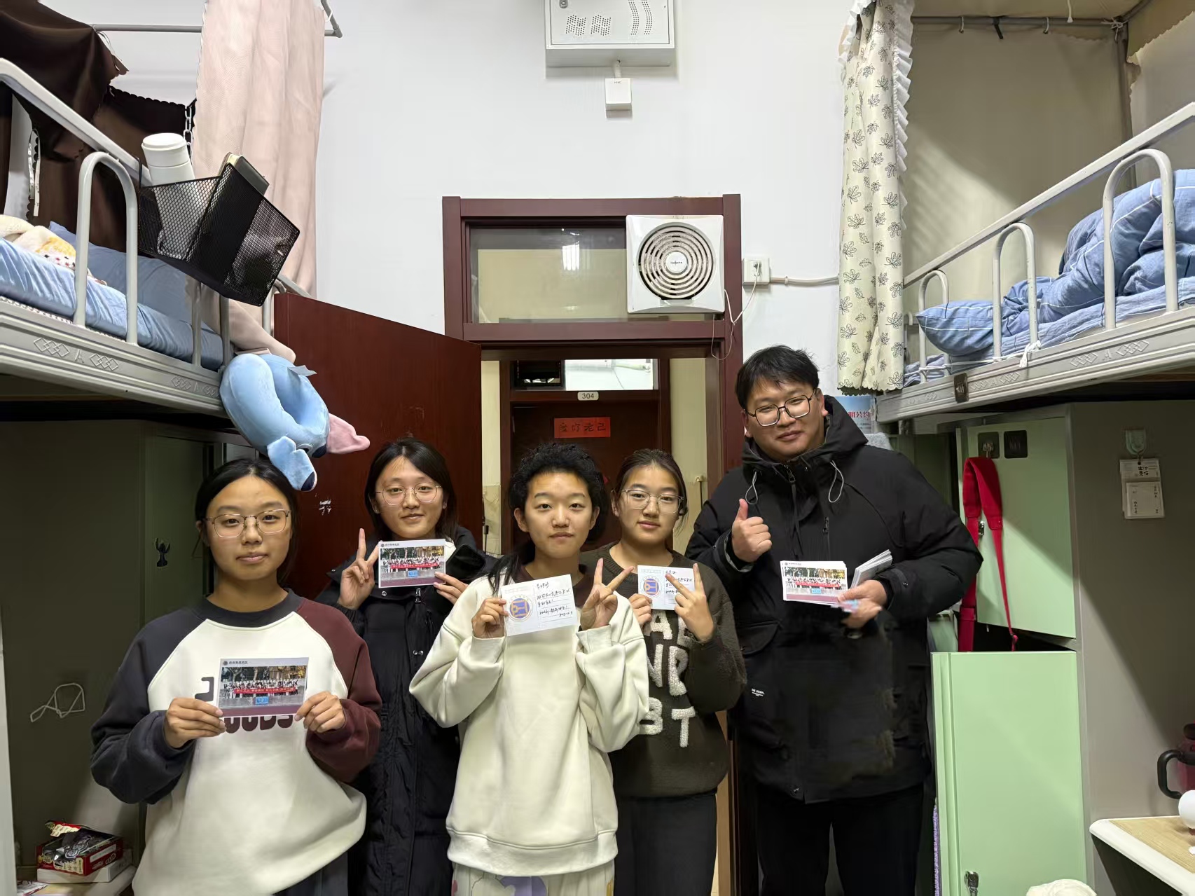 走访过程中,辅导员吕洋老师为每位学生发放了手写的迎新年祝福明信片。