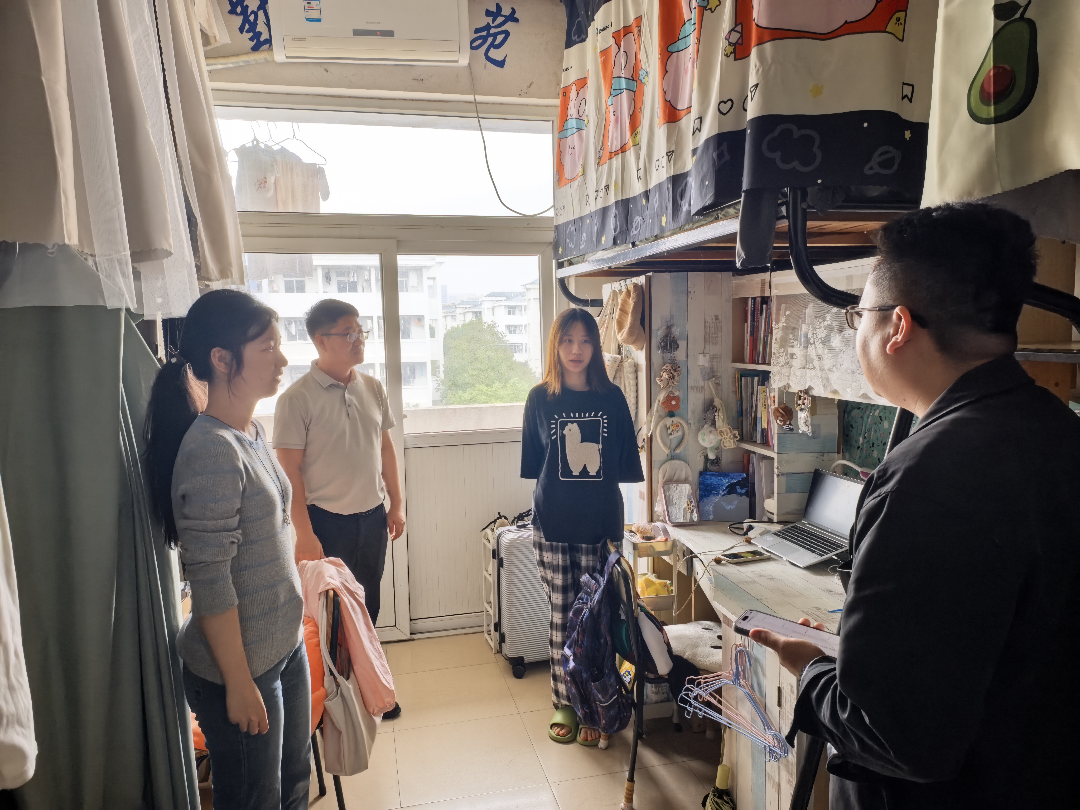 为全面了解学生思想动态和学习、生活、成长等情况,正值中秋、国庆双节来临之际,经管学院领导班子、教师和学工团队通过走访学生宿舍、慰问留校学生等方式,与学生“面对面”交流,共话成长。