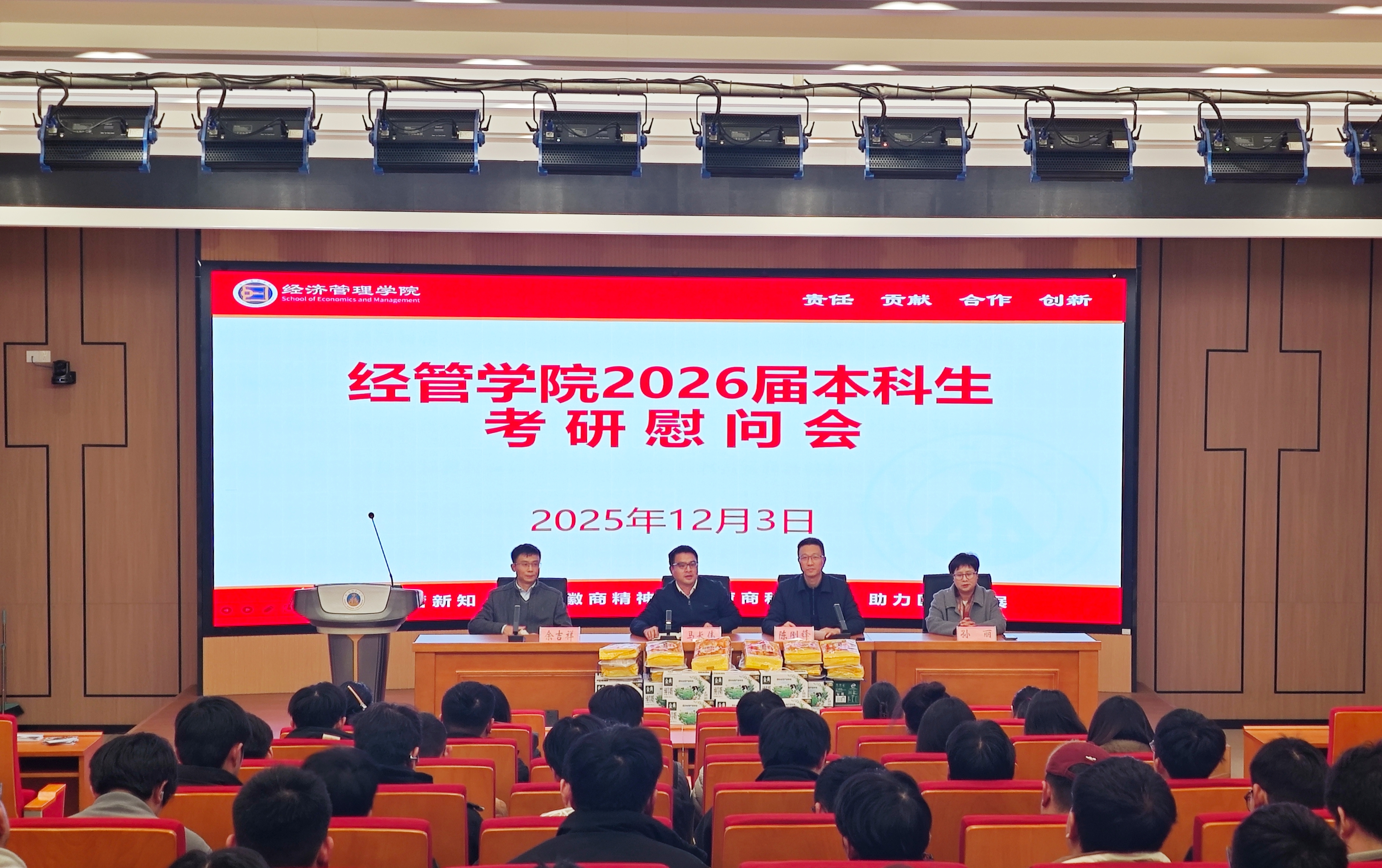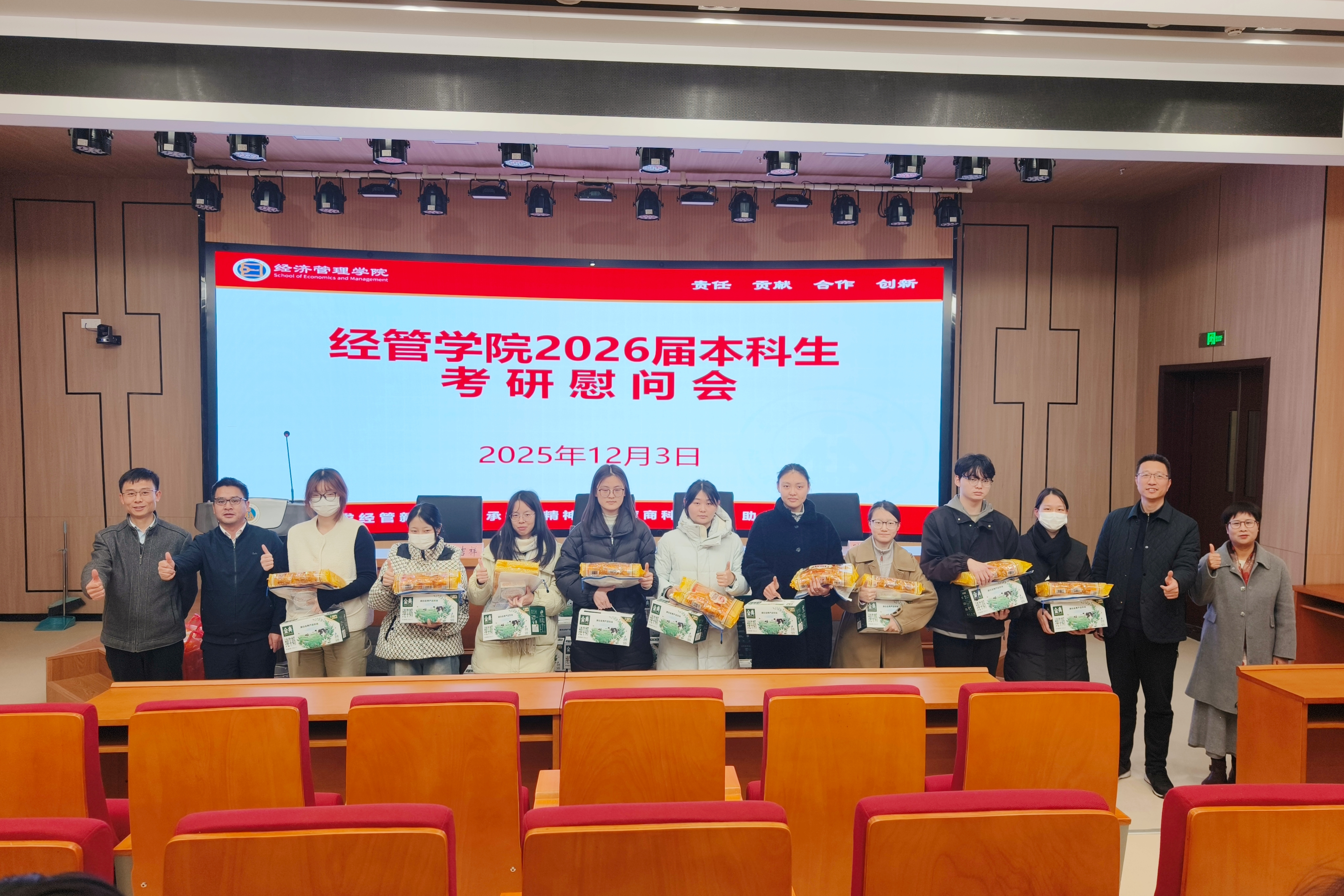 12月3日下午,经济管理学院在望道楼E栋102会议室召开2026届本科生考研慰问会,为即将奔赴考场的185名学子送上考前指导与关怀。经济管理学院院长马长伟、理论经济学学位点负责人余吉祥、财会系主任孙丽,2026届毕业班辅导员和2026届考研学生参会,会议由院党委副书记陈刚锋主持。