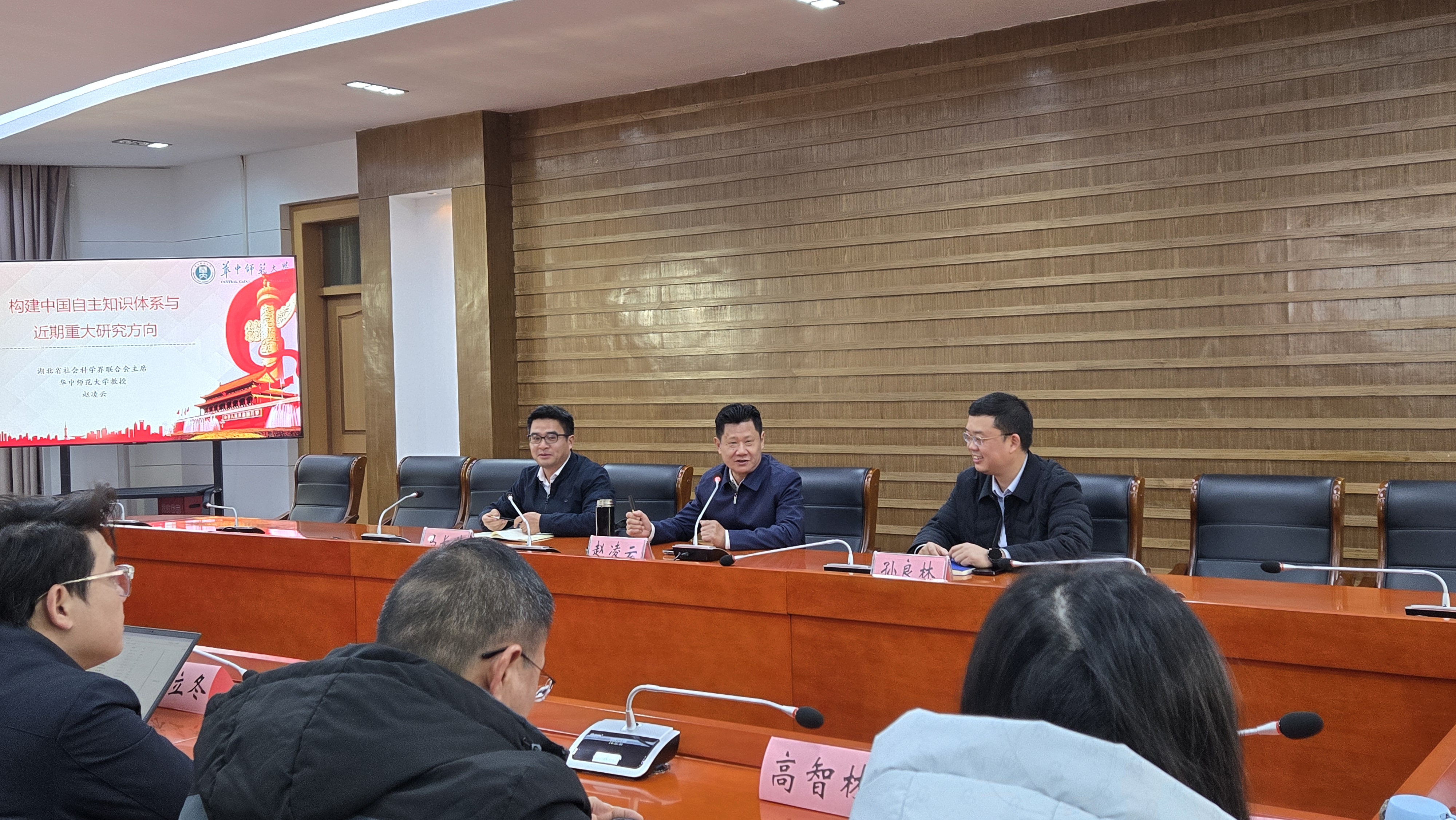 近日,湖北省社会科学界联合会主席、华中师范大学原党委书记赵凌云教授应邀来我校开展“构建中国自主知识体系与近期重大研究方向”专题讲座,校党委常委、副校长田兴友与赵凌云进行了深入交流,讲座由经管学院院长马长伟主持,经管学院党委副书记(主持党委工作)孙良林和相关专业老师及研究生参加交流活动。