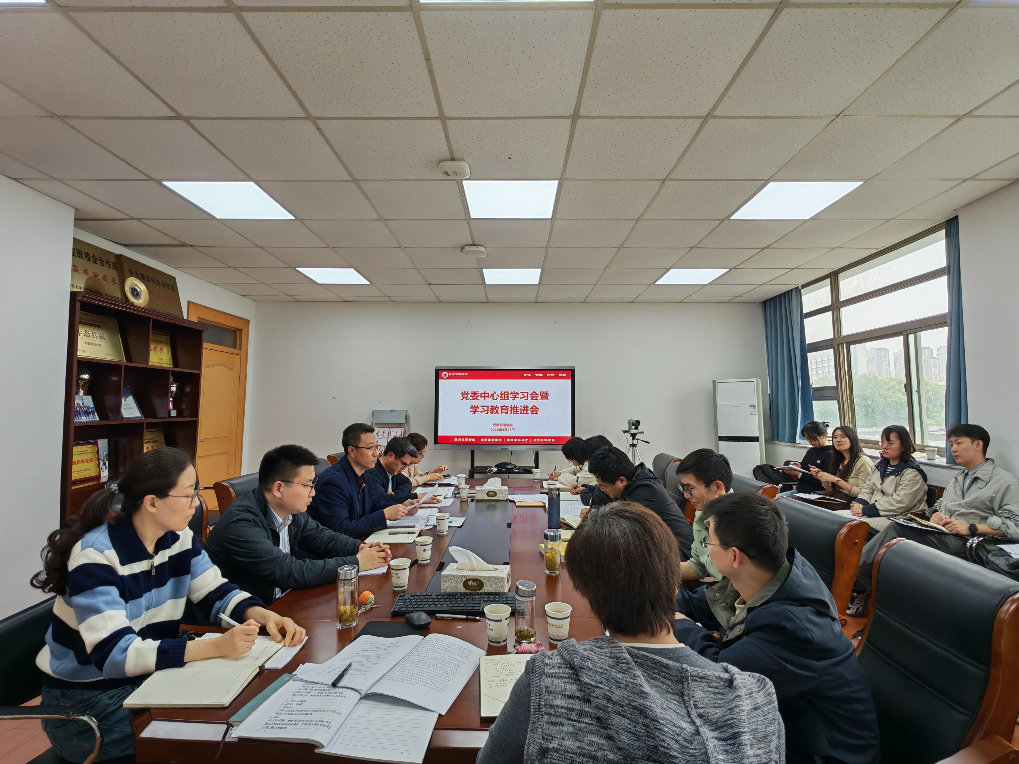 4月15日,经济管理学院召开党委理论学习中心组(扩大)会议暨学院树立和践行正确政绩观学习教育工作推进会,总结学院前一阶段学习教育工作开展情况,研究部署推深做实学校学习教育工作。学院领导班子成员、党委委员、党支部书记参加会议。