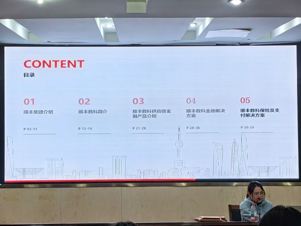 本次讲座聚焦顺丰数科在供应链金融领域的实践创新路径。讲座现场,杨山路经理立足顺丰集团“天网+地网”全域物流网络布局,系统介绍企业以110架全货机、超3.8万个国内网点为核心的产业服务资源矩阵,清晰展现物流与金融深度协同的底层支撑能力。围绕顺丰数科供应链金融生态,她重点解析应收账款融资、库存融资、供应链服务等核心产品,从业务逻辑、方案优势到场景适配进行全方位阐释:应收账款融资通过全线上化流程破解供应商融资痛点,库存融资以在途及在仓货物质押实现高效资金周转,供应链服务则整合采购、物流、金融等环节,构建全链条协同的贸易服务体系。