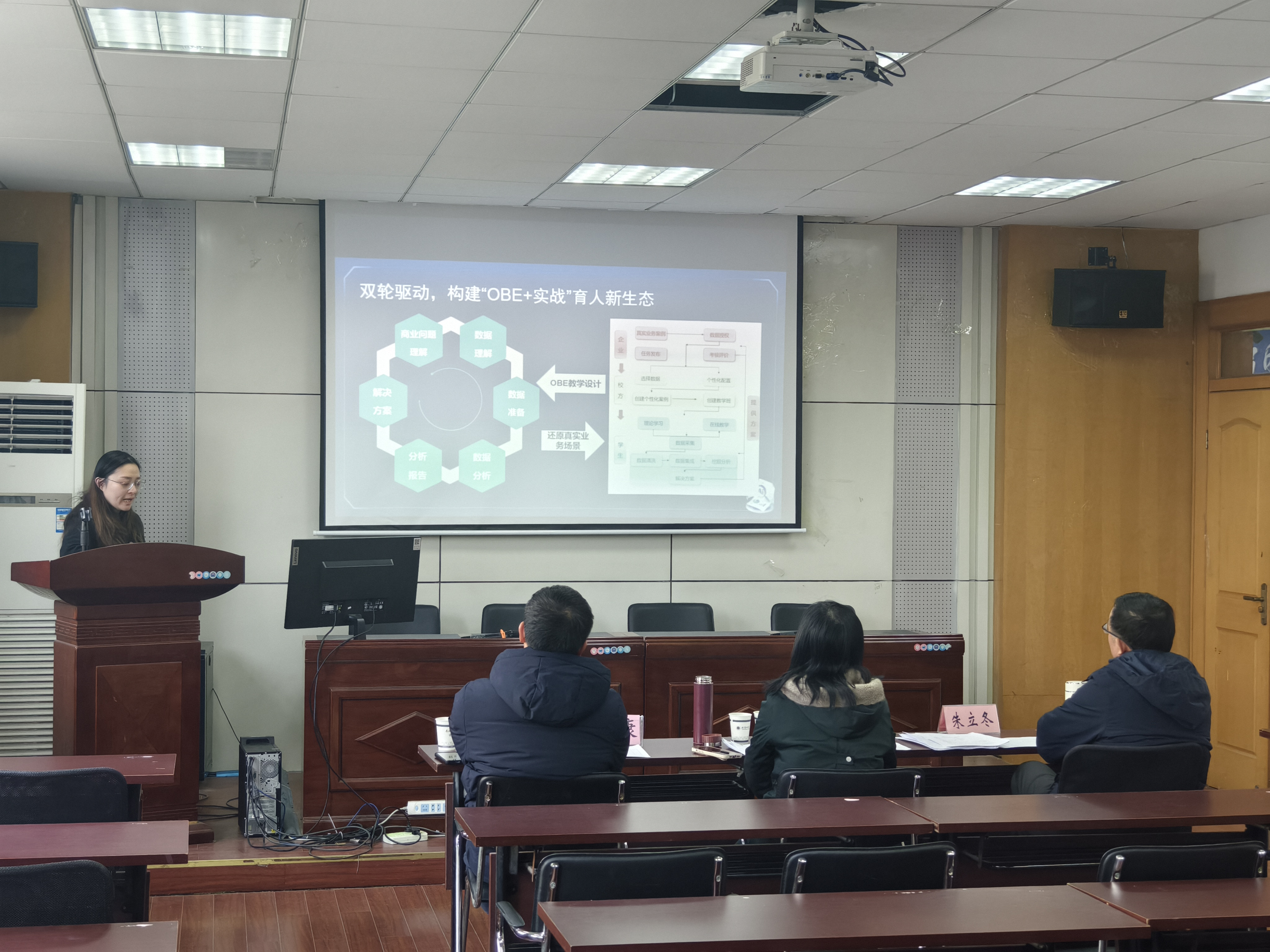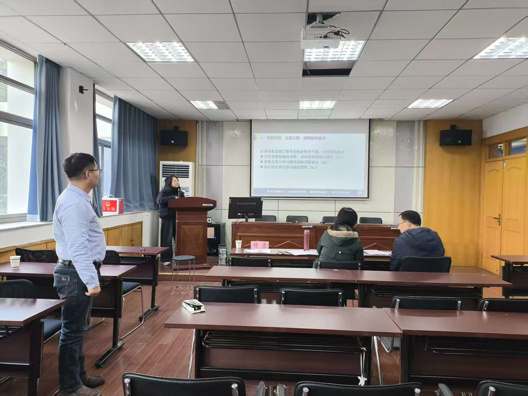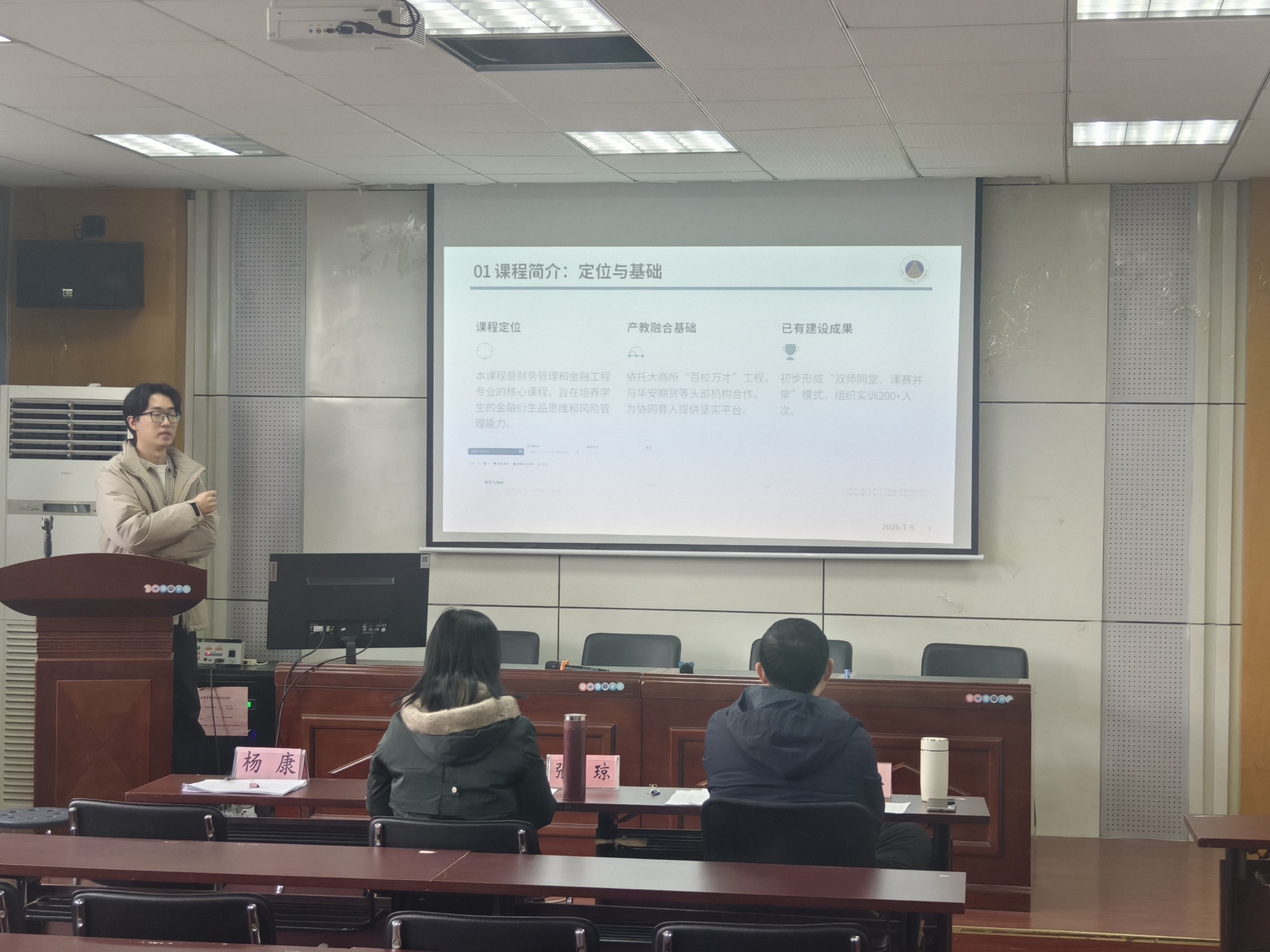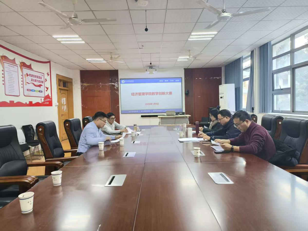 2026年1月9日下午,经济管理学院教师教学创新大赛分别在学院一楼党建室及二楼报告厅成功举办。本次大赛旨在推动教育教学改革,激发教师创新活力,共有12位优秀教师同台竞技,展示教学创新成果。学院马骥老师、许仁青老师、方昶老师、张琼老师、朱立冬老师、杨康老师六位专家担任评委。