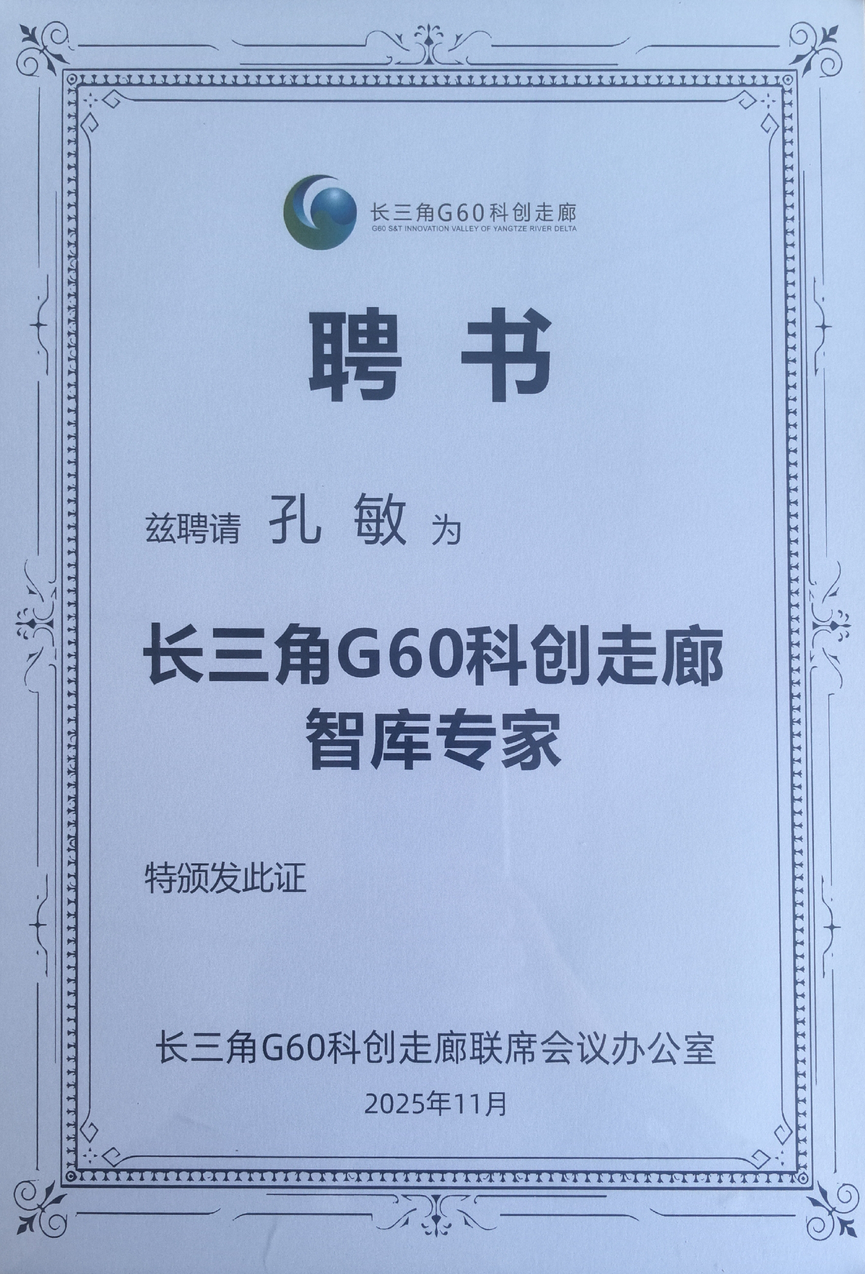 近日,以“凝聚智库力量 服务国家战略”为主题的第三届高端智库支持长三角G60科创走廊一体化高质量发展大会在安徽宣城举行,我校经管学院安徽省数字经济领域科技创新智库(培育)受邀加盟长三角G60科创走廊高端智库联盟,智库主任伍旭中教授、秘书孔敏副教授获聘“长三角G60科创走廊智库专家”。