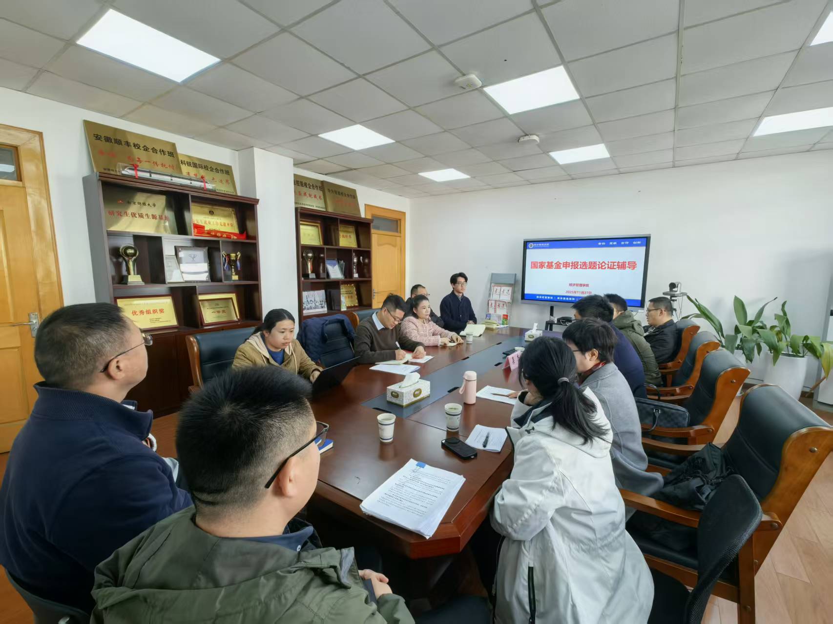 为进一步提升学院教师国家基金项目申报质量,强化选题的科学性、创新性与战略性,近日,经管学院特邀中国科学技术大学吴杰教授担任主讲专家,围绕基金申报选题的核心逻辑、关键要点与实战策略展开深度解析,为申报国家基金教师提供“一对一”式精准指导。经管学院院长马长伟、院党委副书记(主持党委工作)孙良林与吴杰教授就博士点申报、学科建设、专业布局调整等工作进行了深入交流,副院长徐飞和二十多位教师代表参加辅导会。