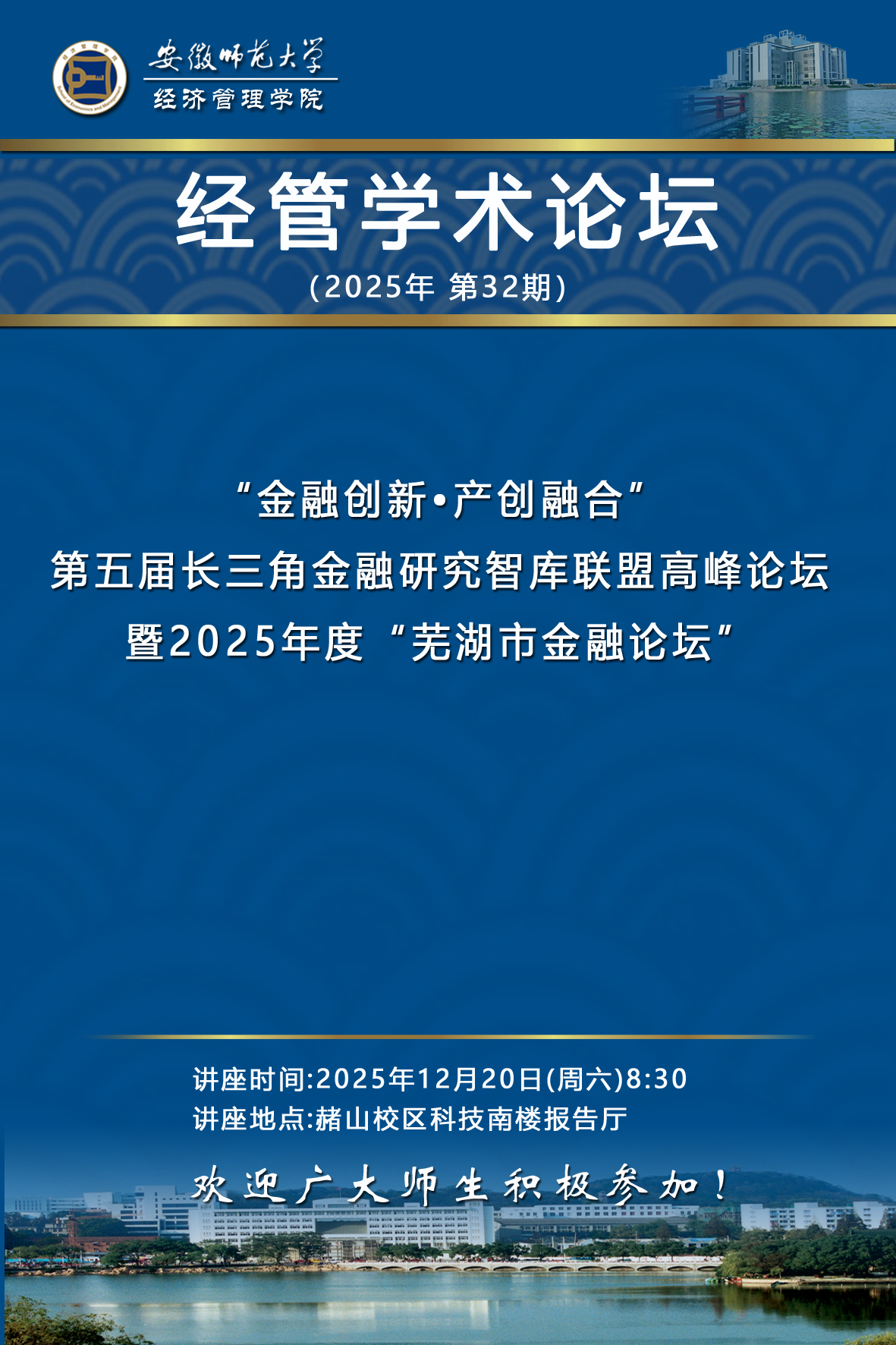 【学术会议预告】经管学术论坛2025年第32期:“金融创新·产创融合”第五届长三角金融研究智库联盟高峰论坛暨2025年度“芜湖市金融论坛”