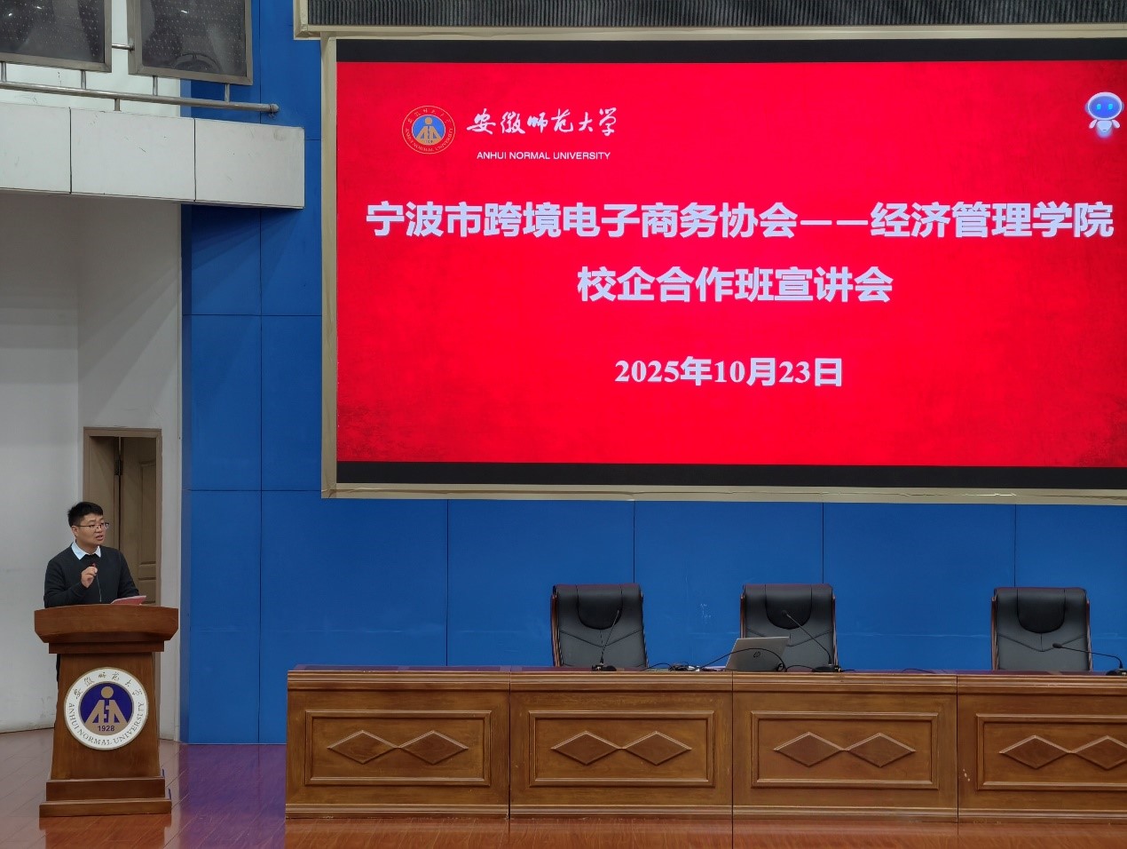 徐飞在致辞中表示,此次与宁波市跨境电子商务协会的合作,是学院立足数字经济时代背景,积极响应国家更高水平对外开放的战略部署和安徽省“跨境电商综合试验区”建设需求的重要举措,将为学院的人才培养注入强劲动力,为学生提供更广阔的实践平台和发展空间。