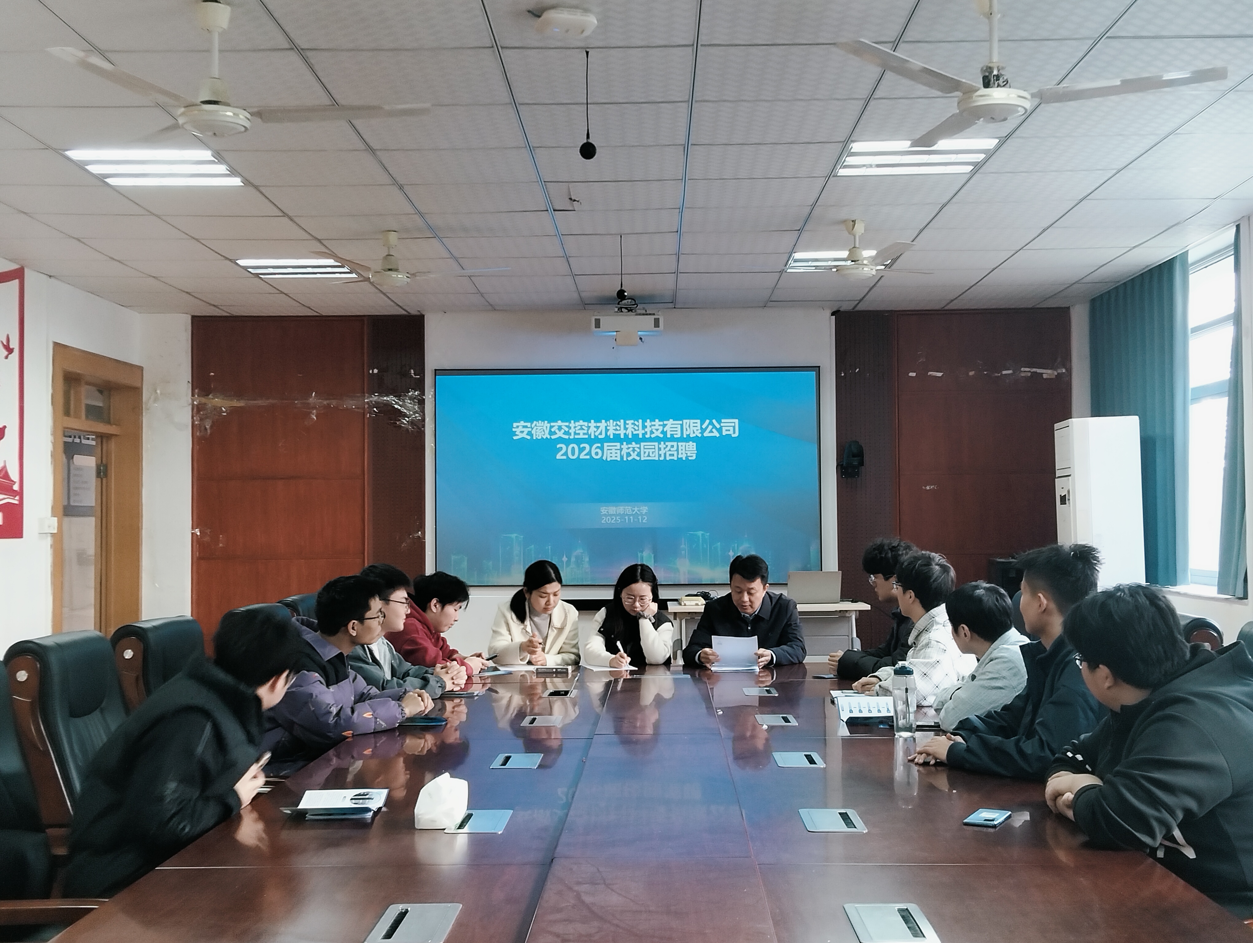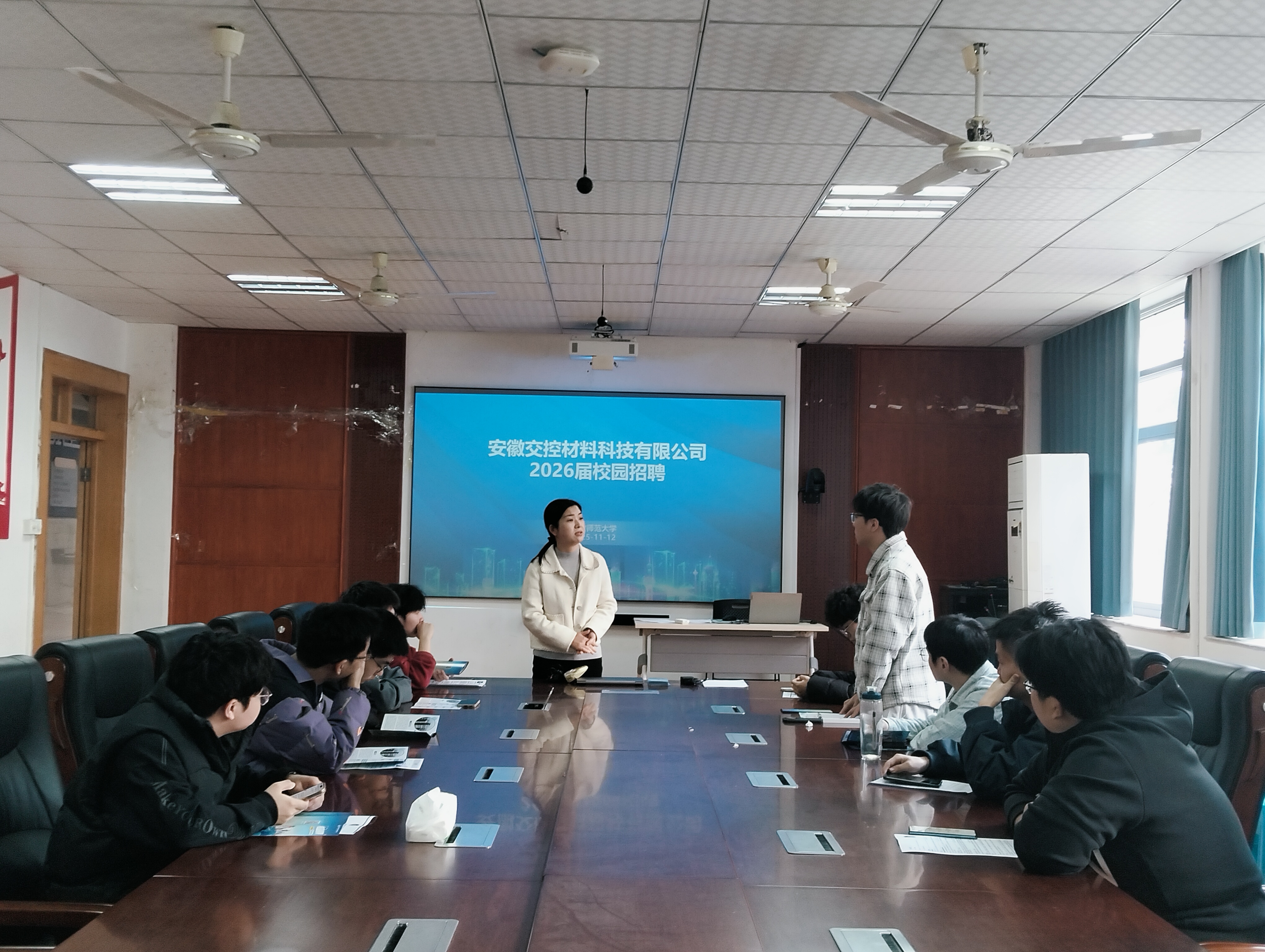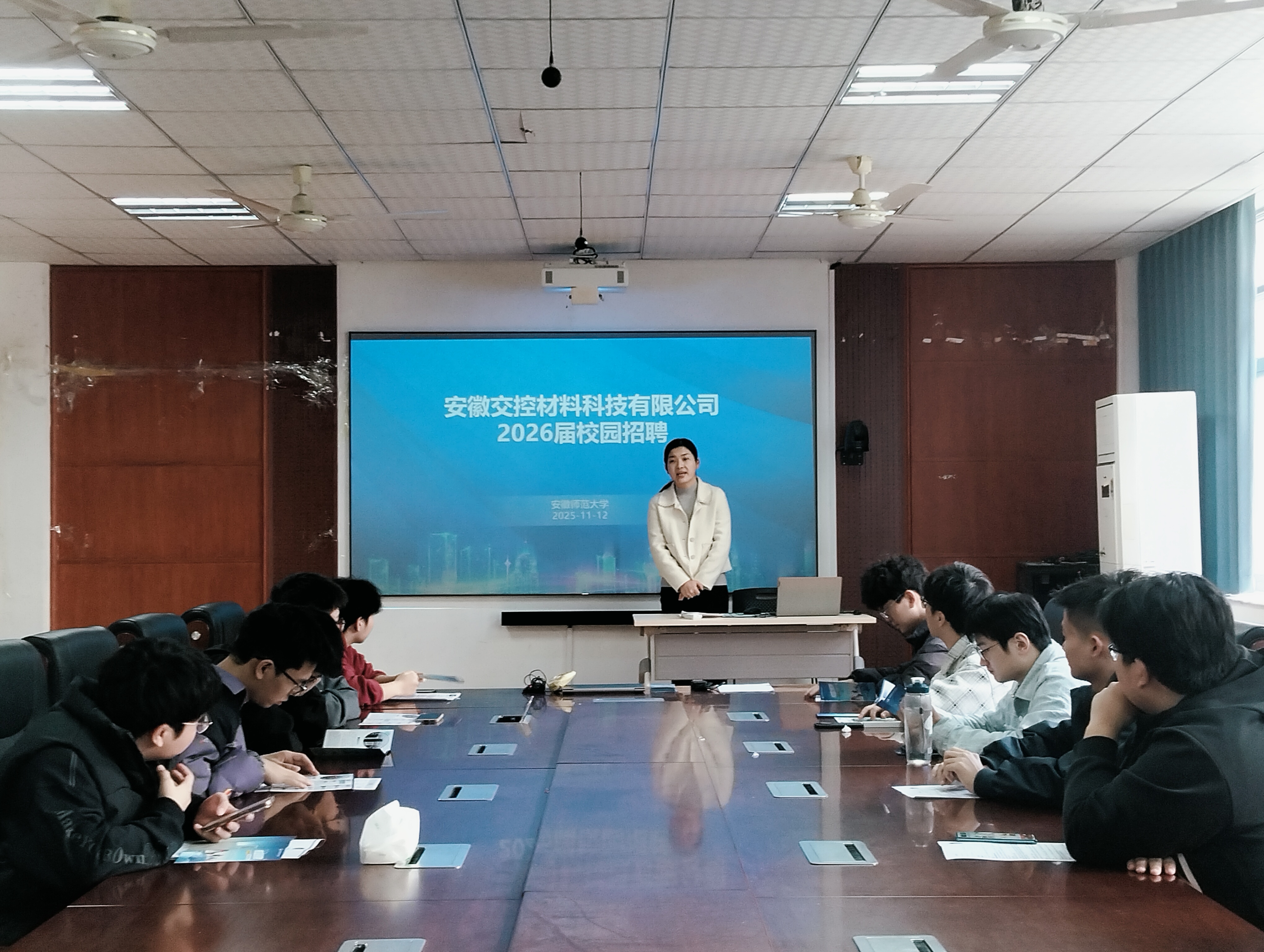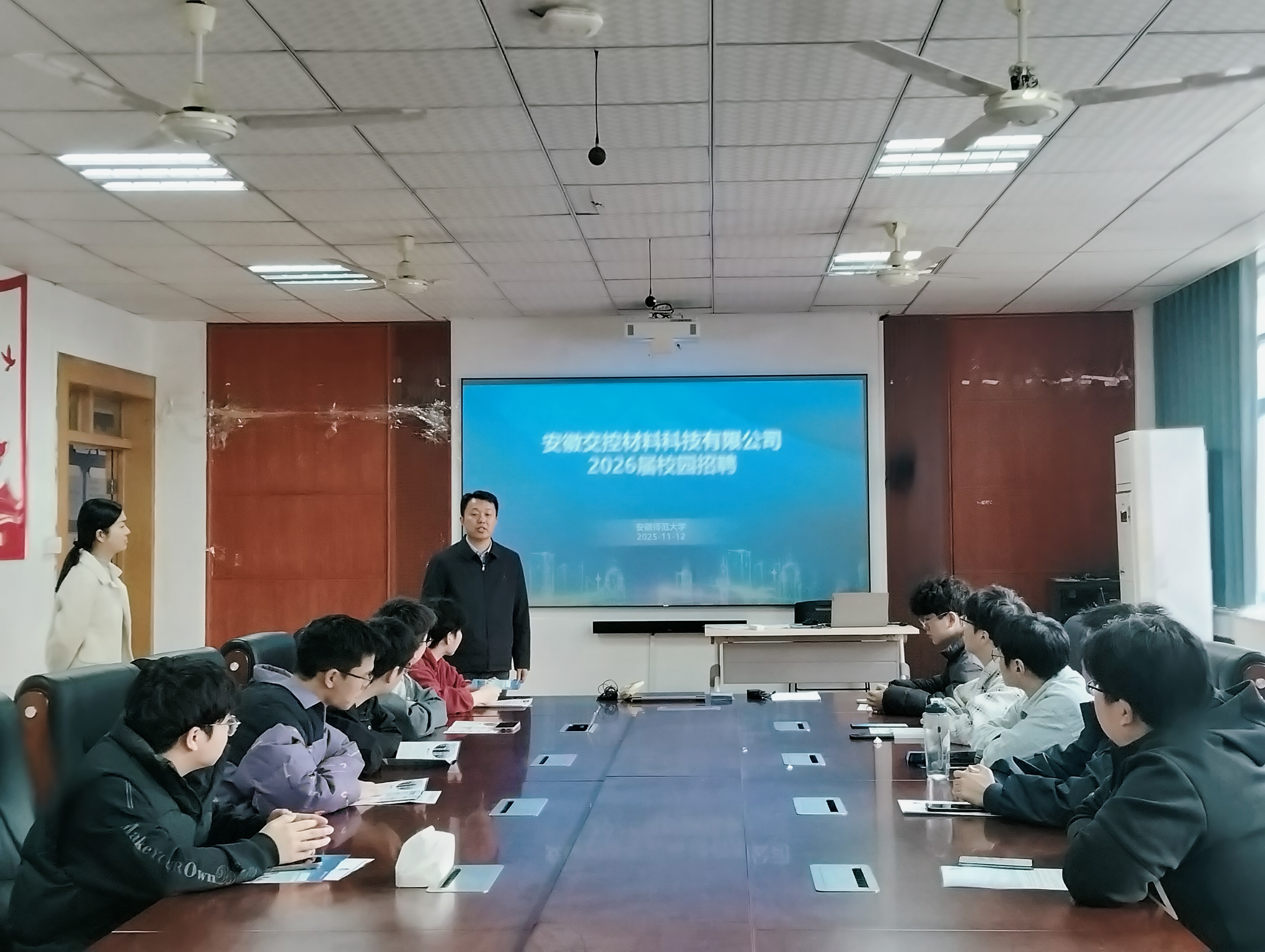 11月12日上午,安徽交控材料科技有限公司在经管学院一楼党电中心开展招聘宣讲会,学院2026届会计学、财务管理等专业学生参加。