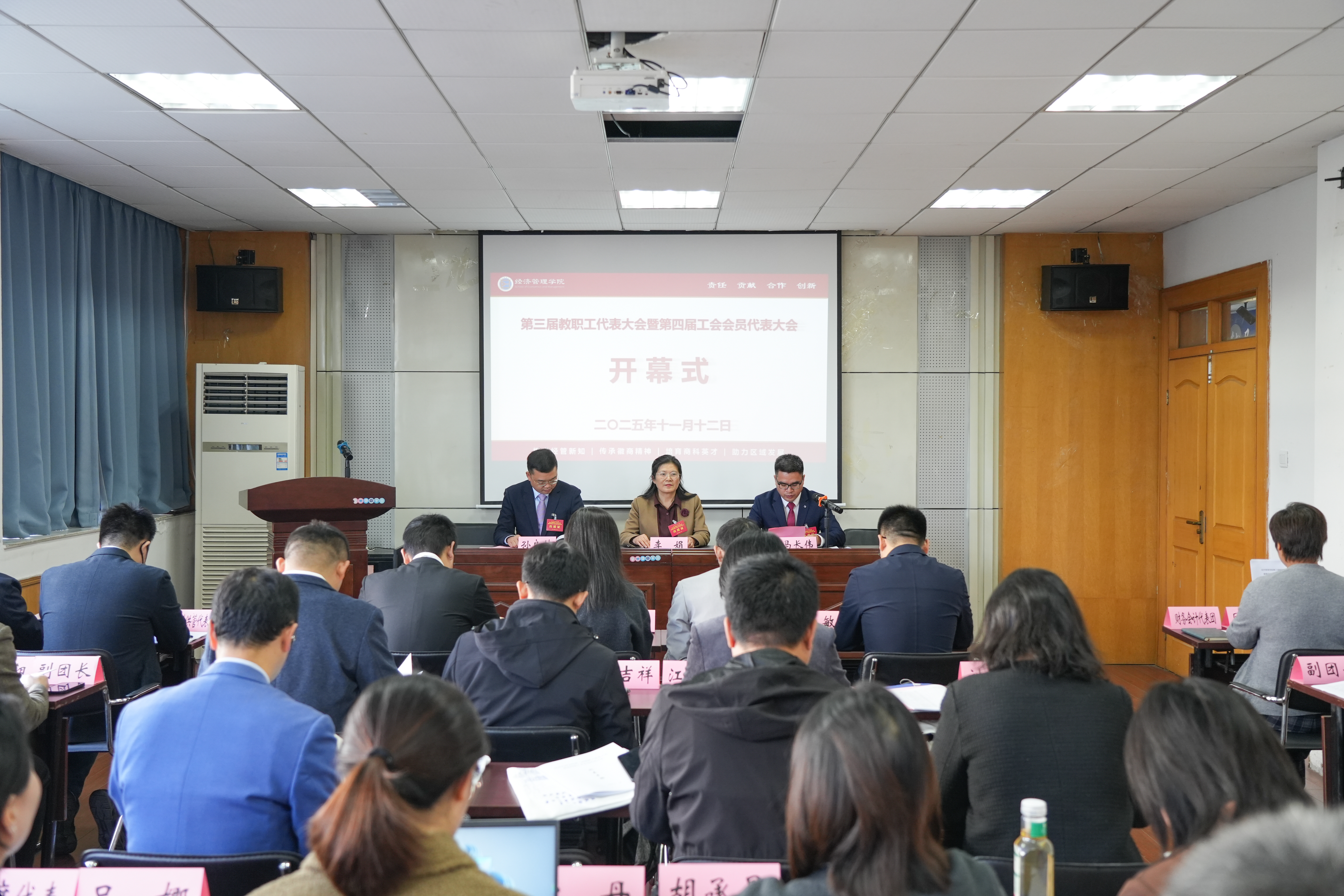 11月12日,经济管理学院第三届教职工代表大会暨第四届工会会员代表大会于学院二楼报告厅隆重召开,学校教育工会主席李娟受邀出席会议,经管学院教职工代表、工会会员代表、列席代表等40余人参加会议。